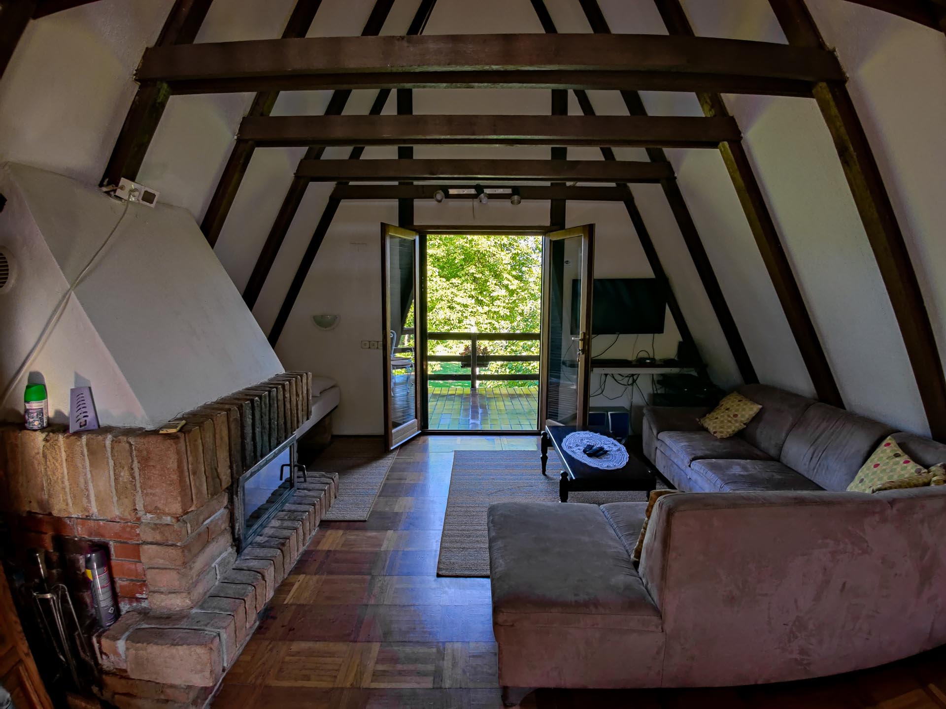 The cabin comfortably accommodates up to 4 guests, with thoughtfully arranged sleeping areas under the sloped roof and in the open-plan living space. Inside, you’ll find a fully equipped kitchen, a cozy lounge, and a clean, modern bathroom — all designed to make you feel at home.